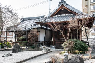 霊光院には延命地蔵が祀られている。あちこちにある長寿を願う延命地蔵ではない。昭和20年3月の空襲の時、三階橋付近で避難民の上に爆弾が落とされて250名余りが亡くなった。その犠牲者を弔う地蔵である。その他に、飯田学区から出征して戦死した方、戦災で亡くなった方の慰霊碑や、日露戦争・太平洋戦争で戦死した方の個人慰霊碑、庚申塔や役行者像などもあり、地域が歩んできた歴史が残されている寺である。 |