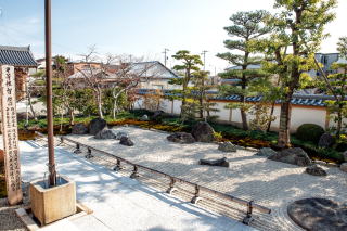 | 本堂の高い檀の上に釈迦牟尼仏の像が安置してある。目を凝らし見てみる。薄暗くて像がはっきりと見えない。 「私の寺は戦争で焼けてしまいましたが、この本尊だけは一宮の萩原にある成福寺に預けてありましたので助かりました。成福寺は、先住の兄弟子の寺です。名古屋の空襲が続くので、見舞いにこられた成福寺の住職が、本尊を萩原に疎開させてはどうかと勧められました。住職は、それはだいじに抱えるようにして持っていかれました。おかげで寺は焼けましたが、本尊は今もこうして拝ませて頂けます」 長全寺は、この地に越してくるまでは新栄町にあった。亀尾山と号す曹洞宗の寺で、江戸時代には990坪もあり、含笑寺の末寺であった。 創建は遠く永禄7年(1564)にさかのぼる。開祖は春岩宗沢である。慶長(1596~1615)遷府の時に、清洲から名古屋に移ってきた。長く新栄町にあった長全寺も戦火のために、あえなく消失してしまった。 「あの時は逃げるに精一杯で、寺が燃えている記憶は残っていません。ふとんを頭から被って逃げました。小学生の時でした」 住職は、戦後すぐに写された航空写真のパネルを指さして、「ここに寺がありました。今は薬局になっています」といわれる。住職が指さされた先は、CBCの東、飯田街道と広小路が交差しているあたりだ。 「戦後の復興事業で境内が二分されることになりました。寺をどこかに移転しなければということで、適当な土地を探していました」。昭和20年(1945)に、今の地を購入し、昭和33年(1958)に本堂が完成した。 本堂が完成した直後伊勢湾台風に襲われた。 「板戸が矢田川の堤防近くまで飛んでいって、それを拾ってきました」。当時、このあたりは田んぼの中であったという。台風が過ぎ去った翌日、板戸を探して、農道を走りまわる住職の姿が彷彿と浮かんでくる話だ。上飯田からは、名古屋駅まで通じる市電が走っていた。市電がのんびりと走る音が聞こえてきたという。 本堂をおりて庭に出る。 「そこにある灯籠も新栄町から持ってきたものです」と住職がいわれる。年代を経た石仏や立派な灯籠を見ていると、往時の長全寺のたたずまいが浮かんでくる。戦火をくぐり抜けてきた灯籠もあれば、焼けて焦げた灯籠もある。痛々しい姿が、戦争のむごたらしさを表している。庭は新たに京都の龍安寺(りょうあんじ)のような石庭が設けられた。白砂にきれいな箒目が入れられ、庭石が島のように配置されてある。石庭を取りまく苔の緑との対比が鮮やかで、華やかななか落ち着いたしつらえになっている。 平成15年(2003)には山門、その前年には客殿が建立された。住職から客殿に案内していただいた。客殿は耕心館と名づけられている。達筆で、感謝のこころを持ちなさい等の、人としてのあるべき姿を教えることばがいくつか書かれている。心の豊かな人に、若い人々を育てたいという意図で建てられた客殿だろう。 長全寺は静謐に満ちた寺だ。何かゆったりとした気分になって寺を出た。 (故 澤井鈴一氏記述) |