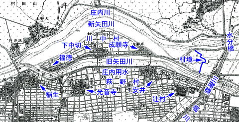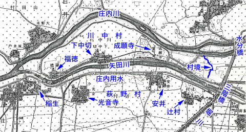 昭和5年(1930)8月に事業実施が決まった。しかしすぐには着工できなかった。付け替え工事を行うと川中村の面積約110町(109.0㏊)のうち65町(64.4㏊)が新しい矢田川になり、残るのは45町(44.6㏊)だけだからである。