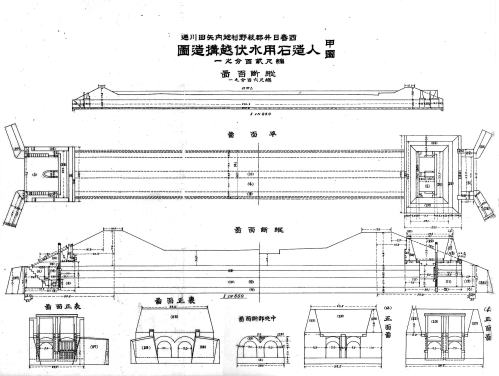 ![]() 出来上がった人造石伏越 (表面は保護のため石張り) 埋め戻して完成 |