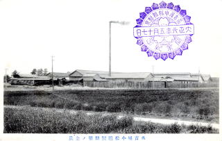 | ◇ 小松組製糸 岡谷の製糸会社で、大正6年(1917)に名古屋工場を開設した。上飯田で最初の工場であった。 『西春日井郡誌』(刊:大正12年)では、郡内の年間生産額で1番多いのは帝国撚糸織物(300万円以上)、次が原製糸(200万円以上)である。それに次ぐ150万円以上に小松組製糸場・豊田織布・御幸毛織の3社が揚げられ、小松組製糸は郡内で5本の指に入る大工場であった。ちなみに東京モスリンは15万円以上、川上絹布は6万円以上と書かれている。 |