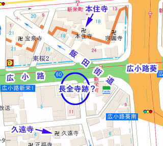 ![]() 旧所在地 明治2年の地図 『尾府全図』 |