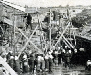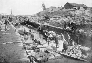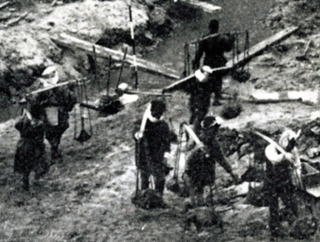 | ◇人造石伏越への改築風景 (『庄内用水元樋及矢田川伏越碑改築紀念』より) |