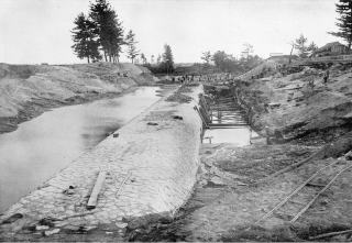 ![]() 出来上がった人造石伏越 (表面は保護のため石張り) 埋め戻して完成 |