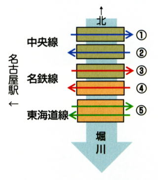 当時、初めて堀川に架かった鉄橋は替えられたものの、その橋脚は140年たった今も現役で堀川を渡る電車を支えている。まさにほりかわでの最古参の土木遺産だ。